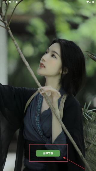 4、选心仪壁纸,如古风人物图,点【立即下载】设为桌面背景。