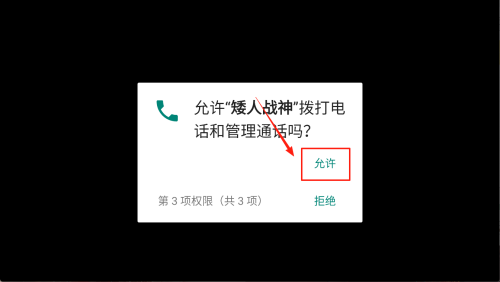 2、授予权限:在弹窗“允许矮人战神拨打电话和管理通话吗?”中点击“允许”。