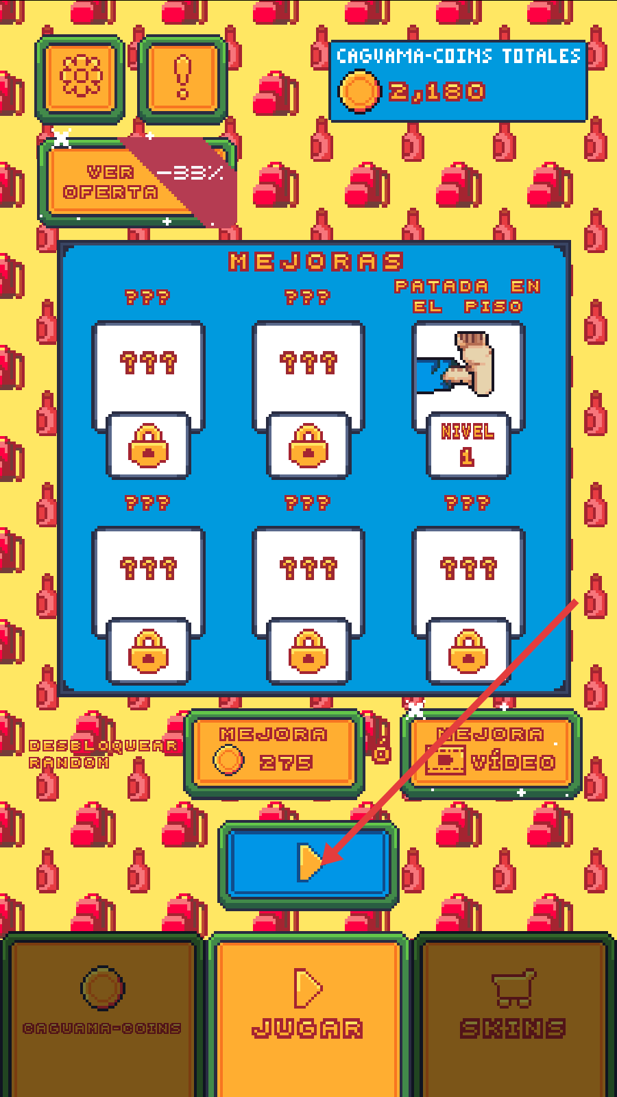 1、在升级界面,优先花费【275-金币】提升技能,如【PATADA-EN-EL-PISO】,增强战斗能力,点击播放按键,进入第一关进行挑战。
