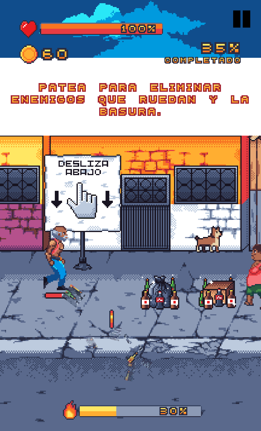 2、战斗中按提示【DESLIZA-ABAJO】,用铲子清除滚动敌人与垃圾,高效应对地面威胁。