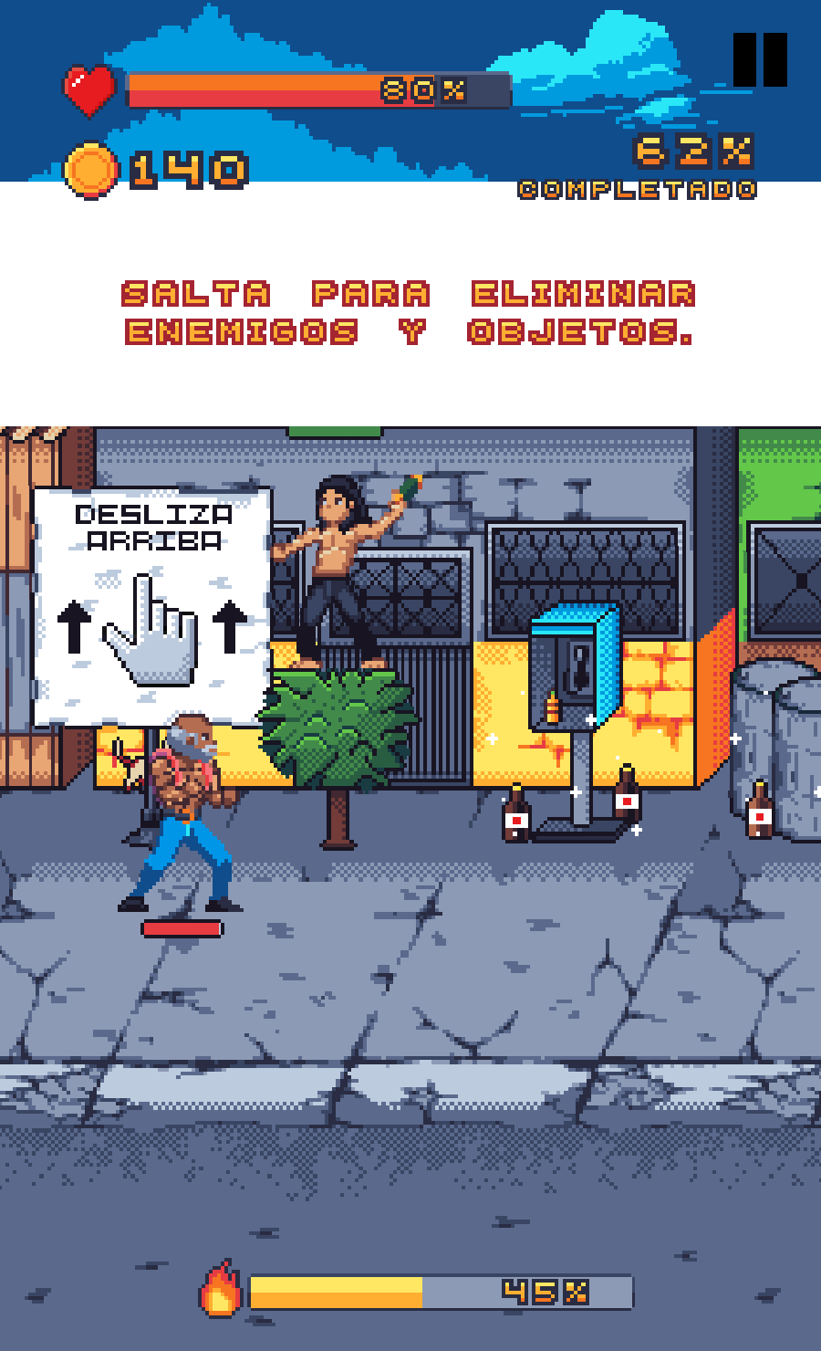 超级格斗大师是一款竖版点阵复古风的策略对战手机游戏,玩家指挥人物进行战术性较量,通过掌握能力发动华丽必杀技。故事主线讲述卡洛斯偶然得到神秘行囊后的魔幻旅程,目的是突破难关顺利返家。采用实时对抗模式需要精确操纵位移攻守行为,任意搭配拳术腿法塑造专属作战方式。道具体系允许搜集升级增强数值,连续攻击配合天赋盘开启新绝招,复古点阵图像结合诙谐剧情呈现特色打斗感受。