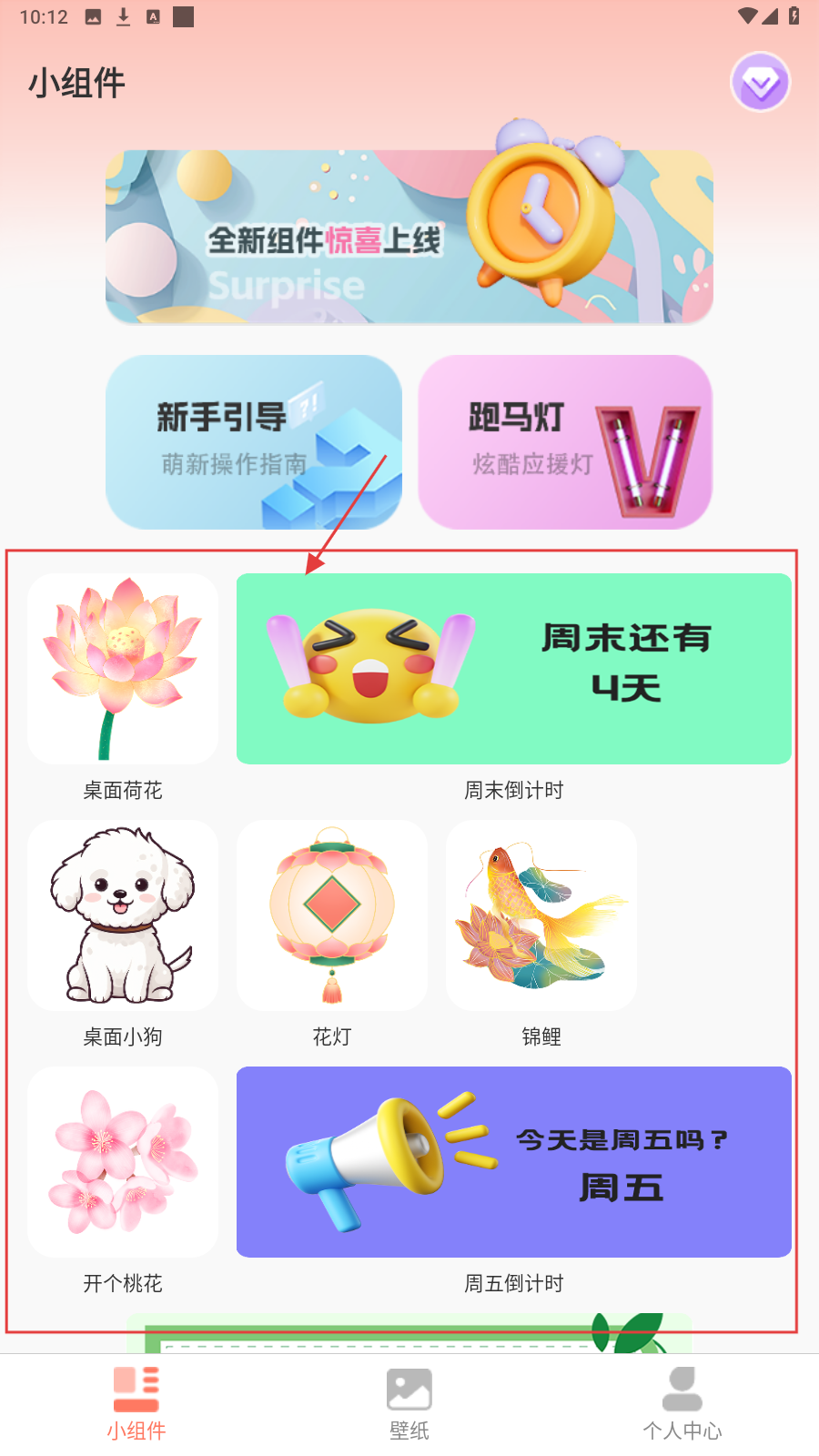 1、打开应用,在【小组件】页面,选择心仪的小组件并点击。