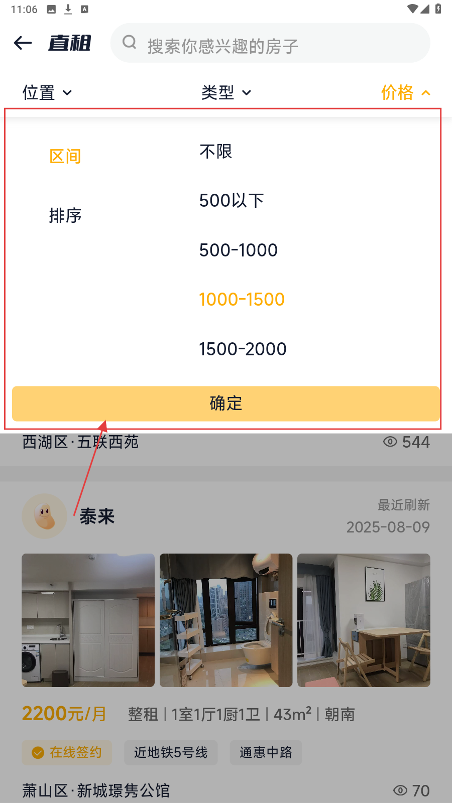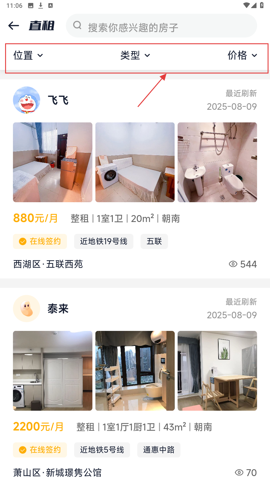 2、进入房源页面,点击上方筛选栏,进行筛选,有助于更快找到心仪房源。
