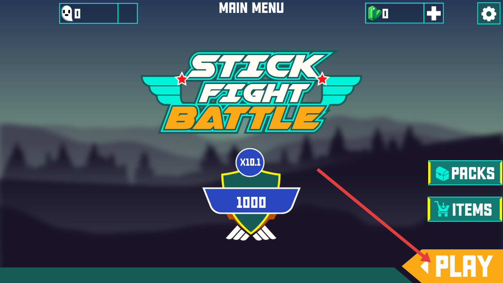 1、主界面点击右下角橙色【PLAY】,进入《StickFightBattle》,开启1000分匹配对战。