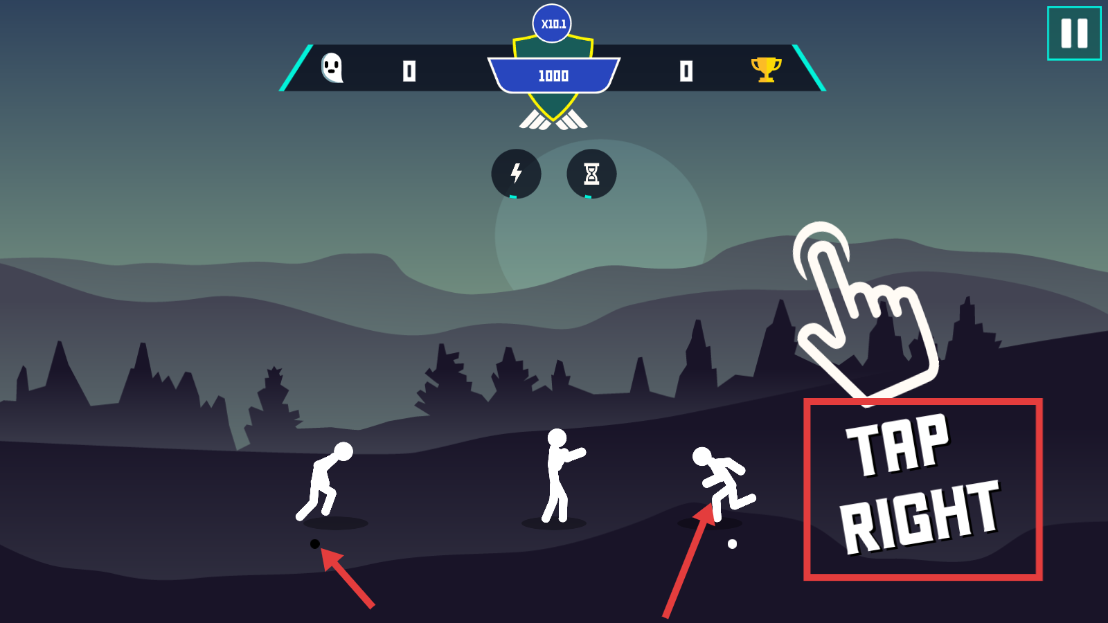 2、战斗中按提示【TAPRIGHT】点击右侧,操控火柴人攻击击溃对手。