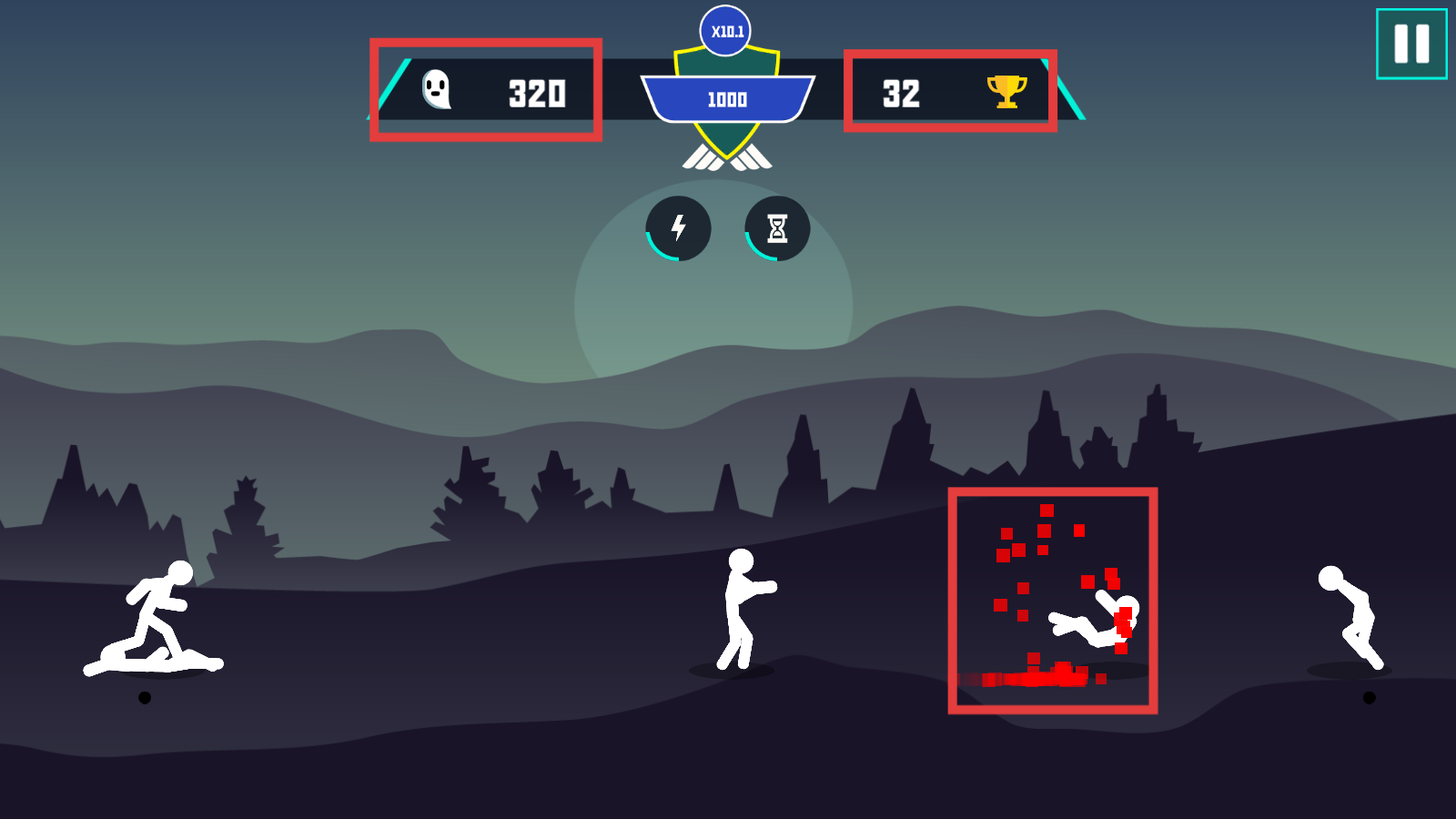 3、紧盯上方分数(幽灵-320/奖杯-32),持续输出,消灭敌人(红血迹标识),积累局内优势。