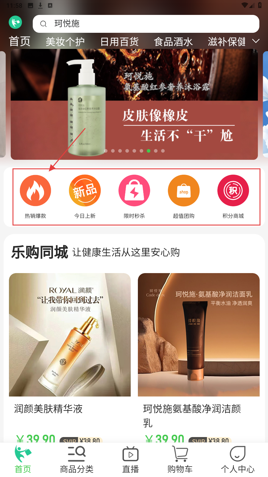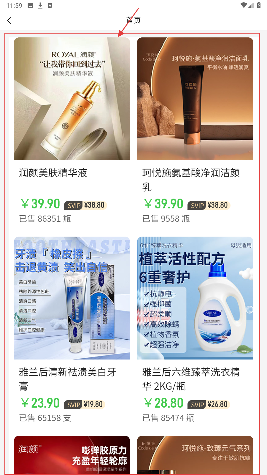 2、在商品列表,选【润颜美肤精华液】,查看商品基础信息。
