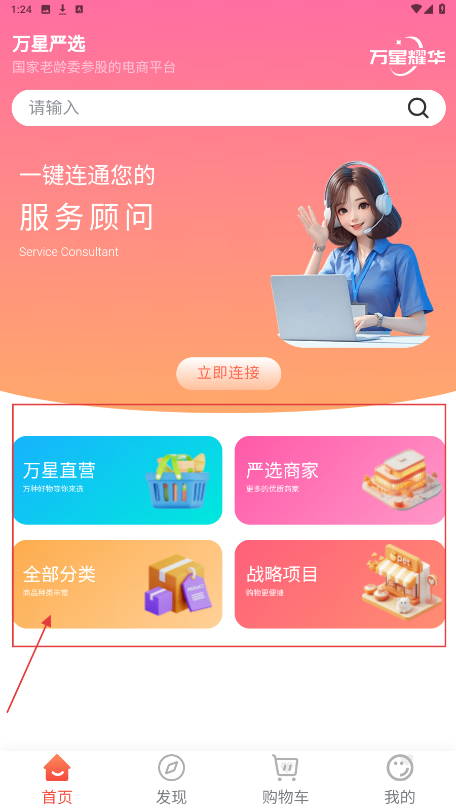 1、打开万星严选,点【全部分类】,可浏览丰富商品类目,快速找所需品类。