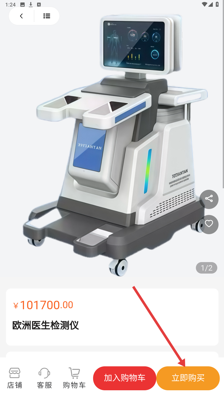 3、进入商品详情,确认是【欧洲医生检测仪】,点击【立即购买】,进入下单流程。