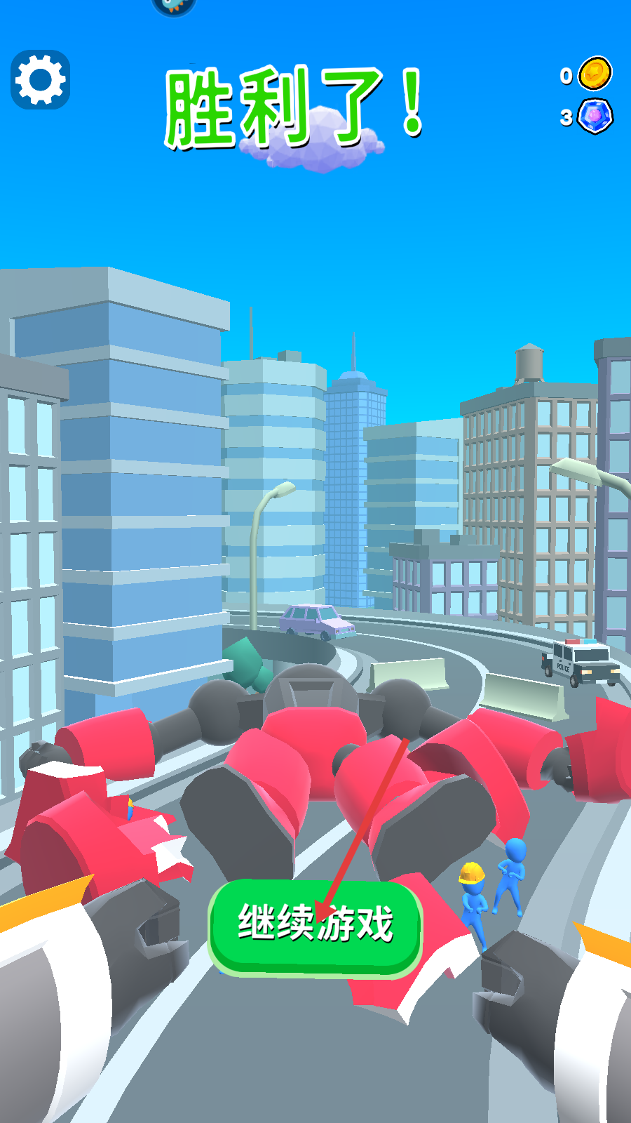 4、获胜后点击绿色【继续游戏】按钮,推进机甲对战的后续关卡进程。