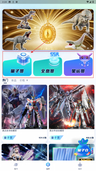 1、进入抽赏页,选【量子赏】等分类,快速浏览对应商品池,找心仪抽赏。