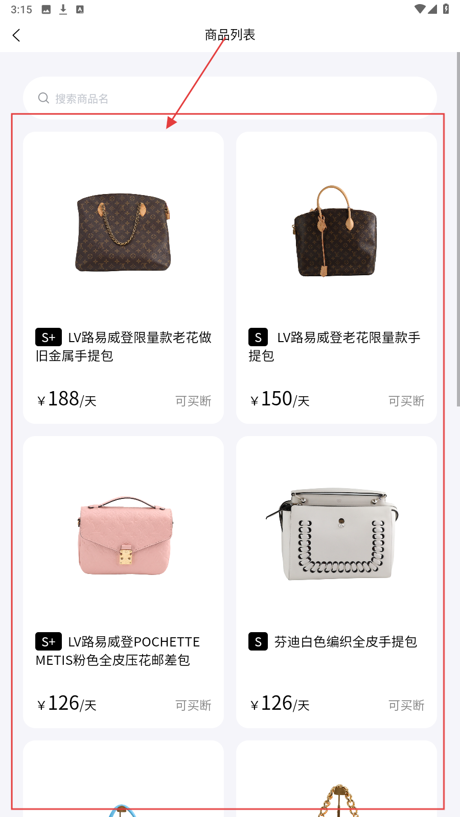 2、在商品列表,选心仪包包(如LV限量款),进入详情页,确认会员价、押金等。