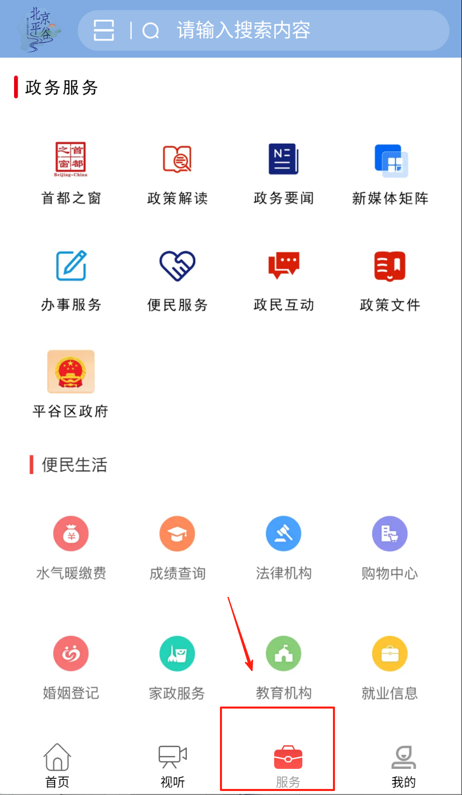 4、通过搜索框输入关键词可快速查找目标新闻,服务页面支持在线办理政务业务和生活缴费等便民服务。