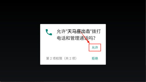 1、授权通话:屏幕弹出“允许天马座出击拨打电话和管理通话吗?”时,点击“允许”以继续。