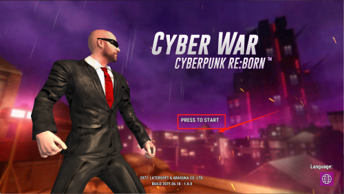 1、启动游戏:在“CYBER WAR CYBERPUNK RE:BORN PRESS TO START”画面,点击“PRESS TO START”进入下一步。