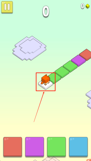 2、点击方块前行:在彩色方块道路上点击屏幕,控制角色沿方块移动,跟随节奏避开空缺,保持前行不中断,推进闯关进度。