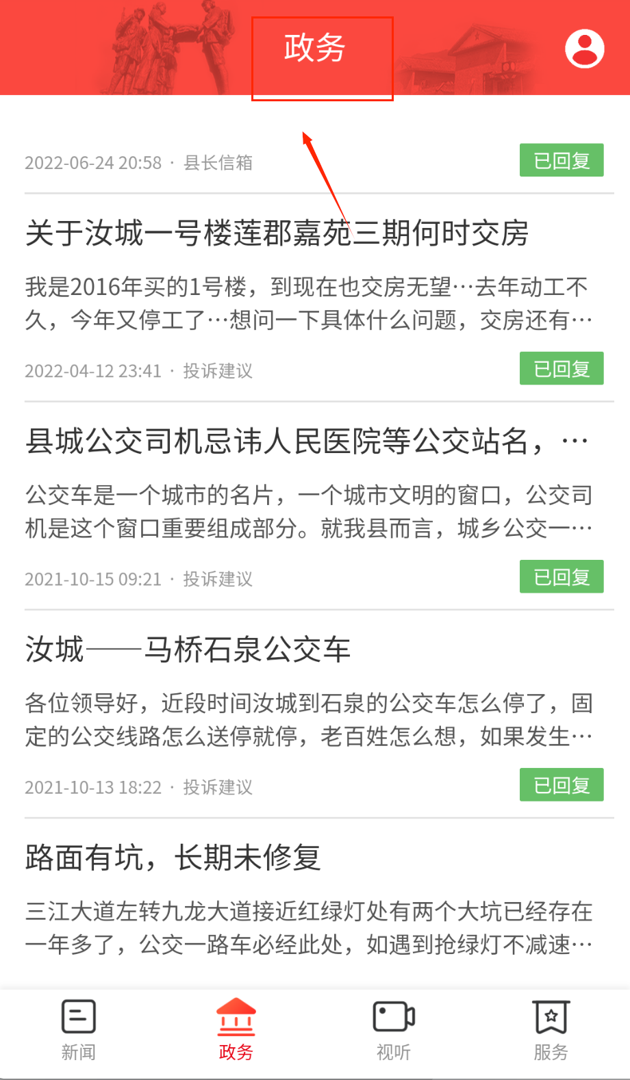 2、在政务服务板块提交个人诉求或民生建议,上传图文材料完善问题描述,实时跟踪办理进度并查看部门回复结果。