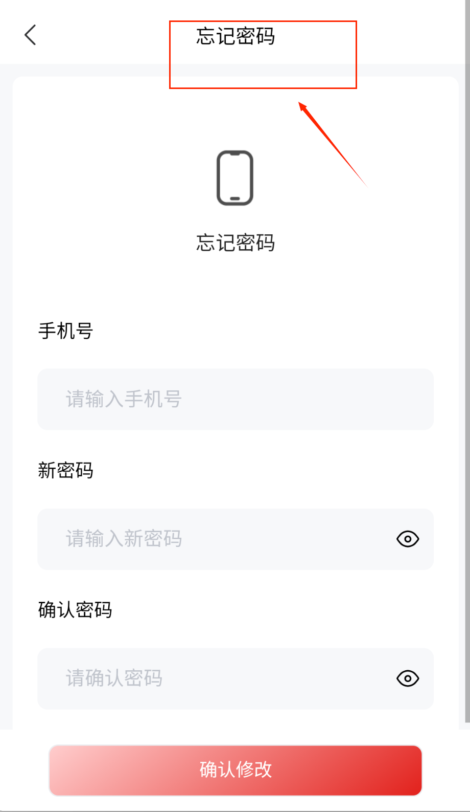 4、如果忘记密码可以点击忘记密码链接,输入手机号和新密码,确认密码后点击确认修改就能重新设置密码啦。