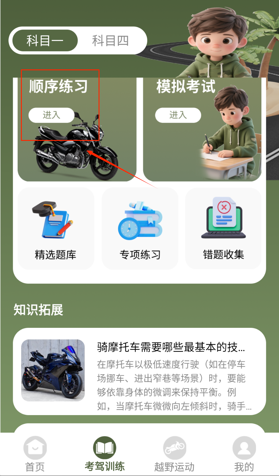 1、注册账号后需要选择对应的摩托车驾照考试类型(D/E/F照),根据个人时间安排设置每日学习计划,系统会智能推荐适合的练习内容和进度。