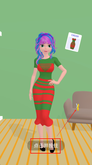 3、选择动作:在游戏场景中,根据提示“点击并拖住”来模拟人物动作。