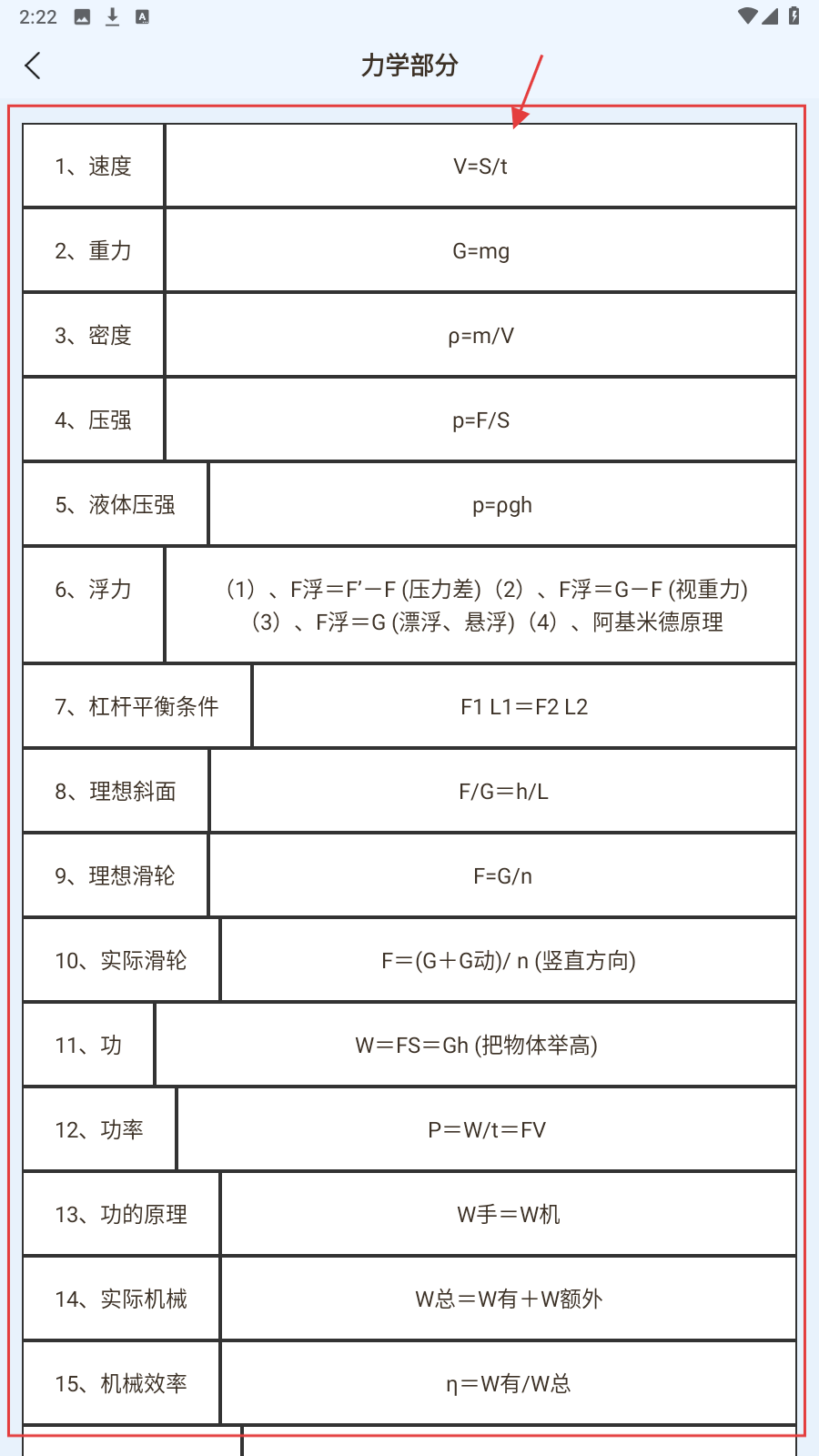 4、进入物理公式详情,查看力学部分公式(如【V=S/t】【G=mg】),巩固知识。