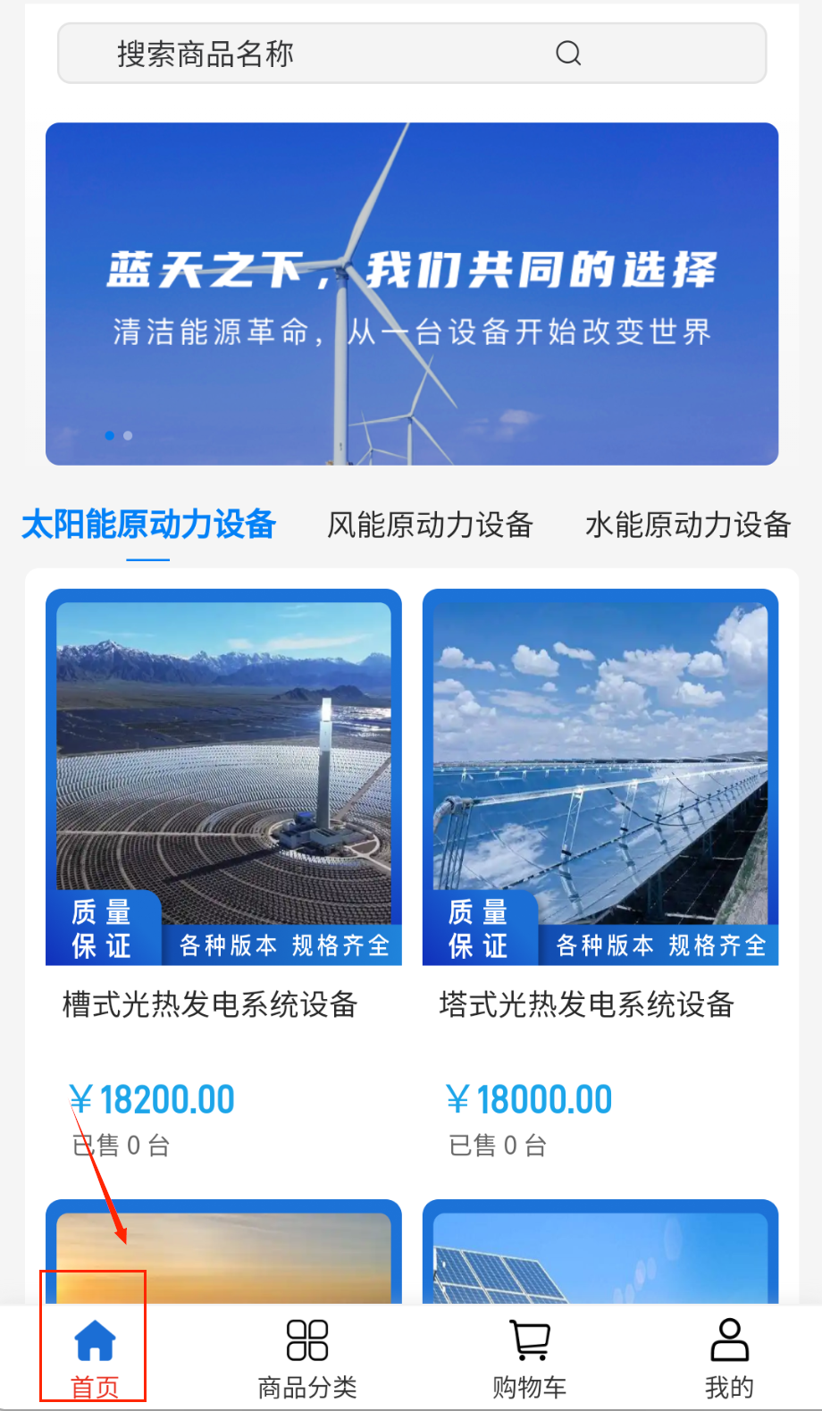 1、用户可通过首页分类导航或顶部搜索框快速查找新能源设备,商品详情页包含10张以上高清实拍图、详细技术参数和真实用户评价。
