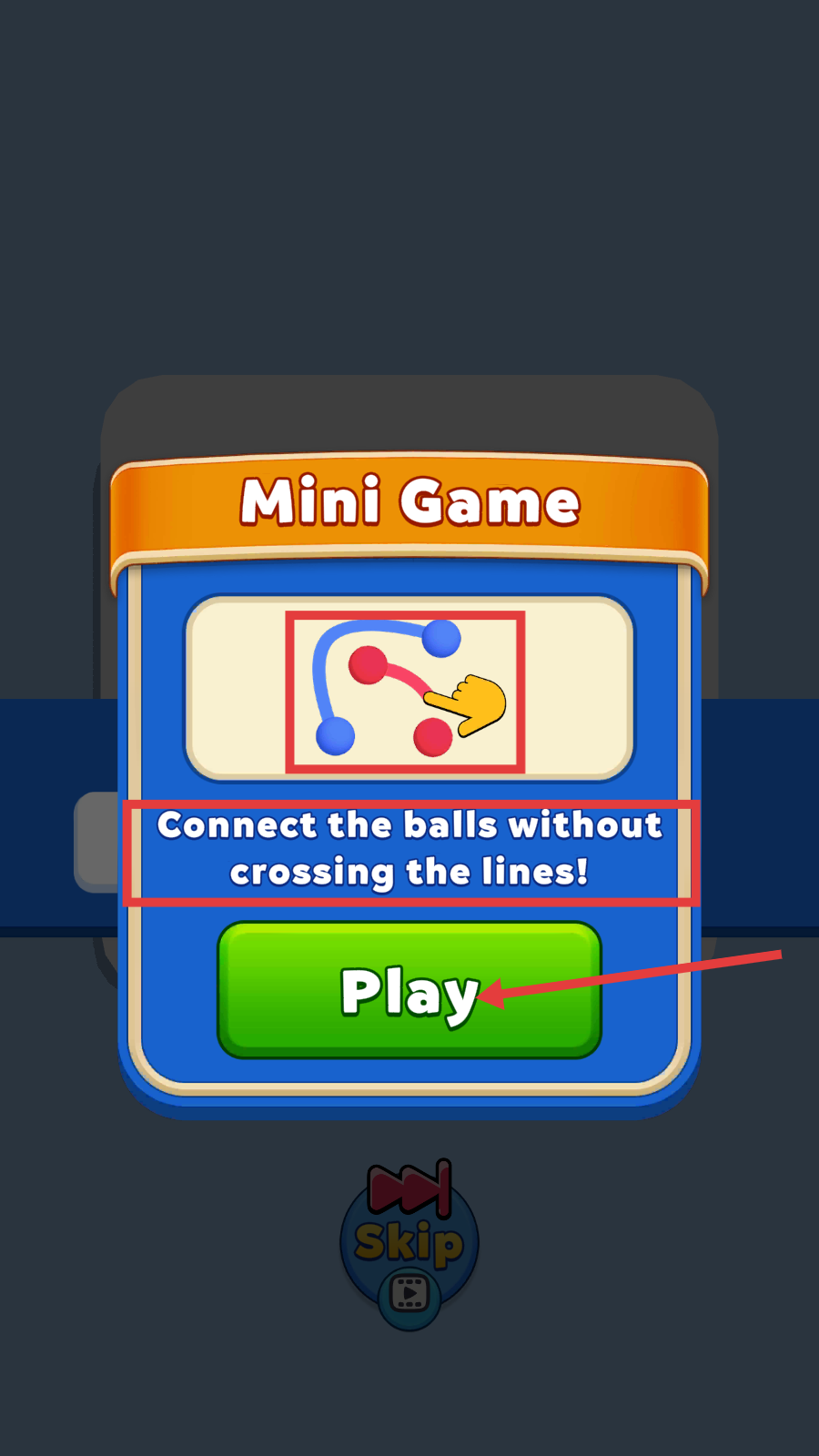 2、迷你游戏界面,遵循【Connect-the-balls-without-crossing-the-lines!】规则,点击【Play】启动连线。