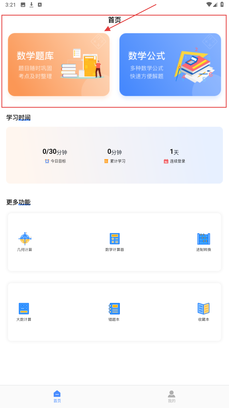 1、进入首页,选【数学题库/数学公式】,开启数学知识学习或刷题。