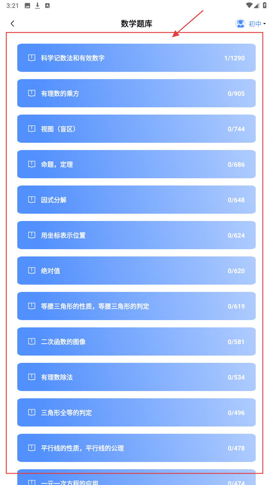 2、在【数学题库】,选知识点(如科学记数法),进入对应题目练习。