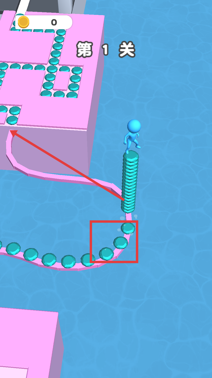 3、留意路径弯曲段,保持宝石堆叠高度,沿轨迹引导小人安全抵达终点,避免落水。