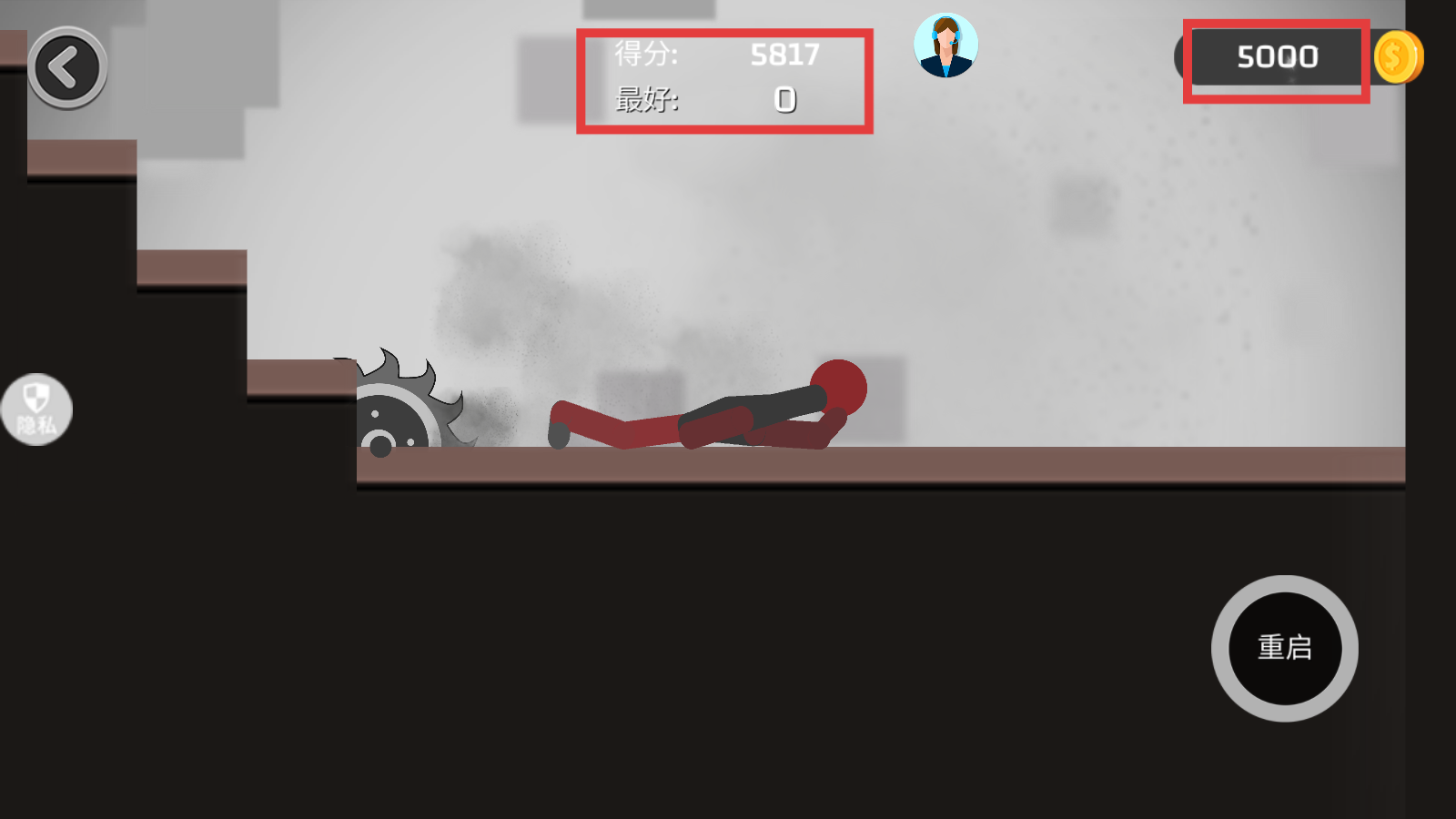 3、操控角色闯过楼梯,躲避齿轮障碍,积累得分(如5817),刷新记录。