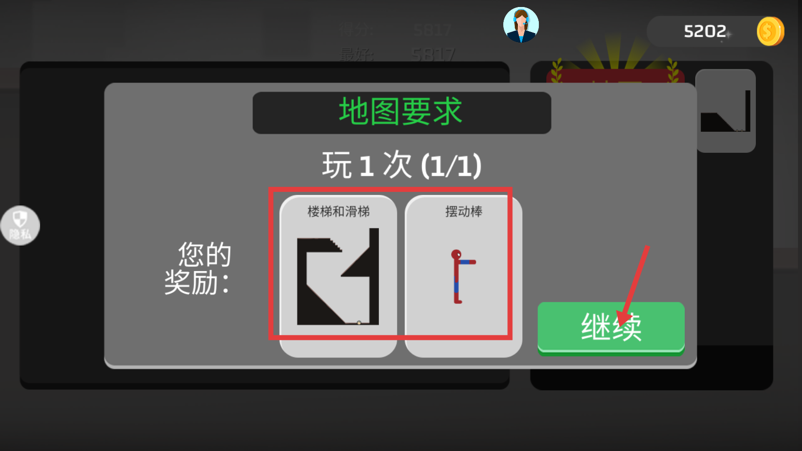 4、完成“玩1次楼梯和滑梯+摆动棒”任务,点击【继续】,领取奖励解锁新内容。