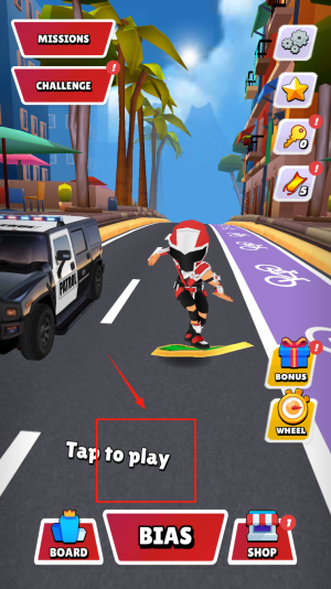 1、进入主界面:在“MISSIONS CHALLENGE BONUS WHEEL”菜单,轻点“Taptoplay”立刻开始游戏。