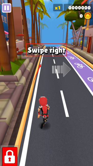 2、向右滑避障:屏幕提示“Swipe right”时,手指向右滑动即可让角色安全通过右侧障碍。