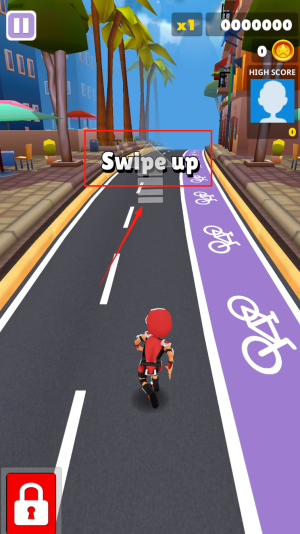 3、向上滑跳高:当“HIGHSCORE”界面出现“Swipeup”提示,向上滑动让角色跃过障碍并刷新高分。