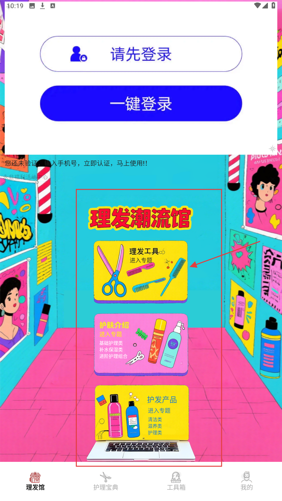 1、打开应用,在【理发馆】页面有理发工具、护肤介绍等功能按钮,按需选择,如点击【理发工具】。