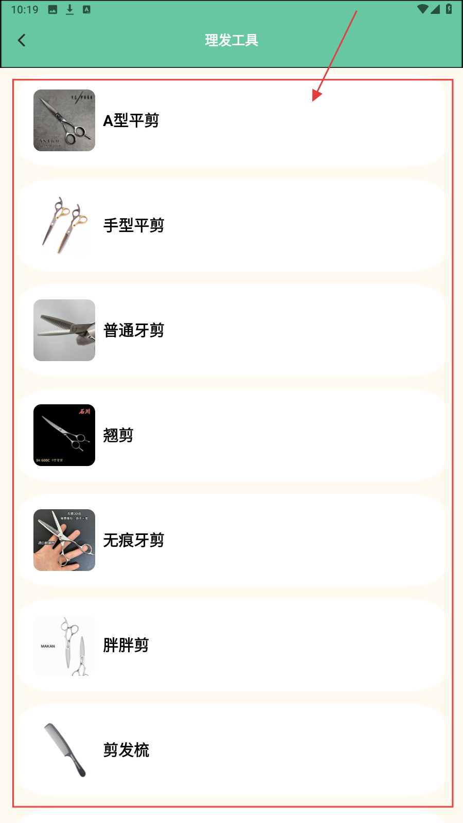 2、进入【理发工具】页面,浏览工具列表,点击需要查看的工具信息。