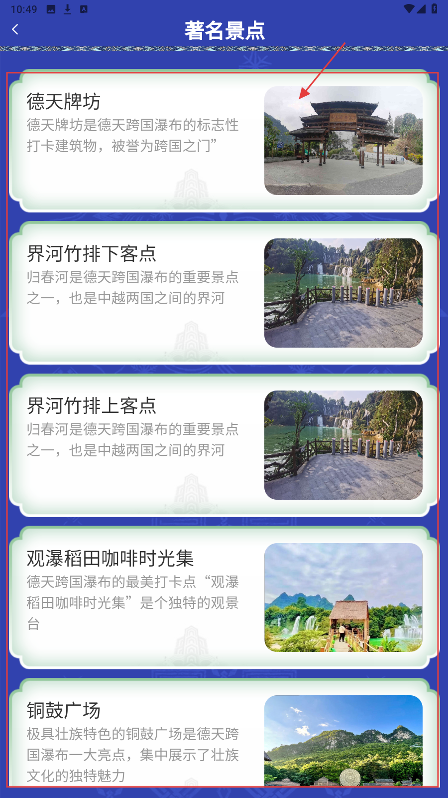2、进入【著名景点】页面,选择感兴趣的景点点击查看。