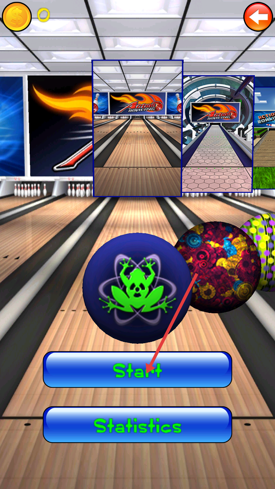 1、选择保龄球(如青蛙图案球)与赛道,点击【Start】开启游戏。