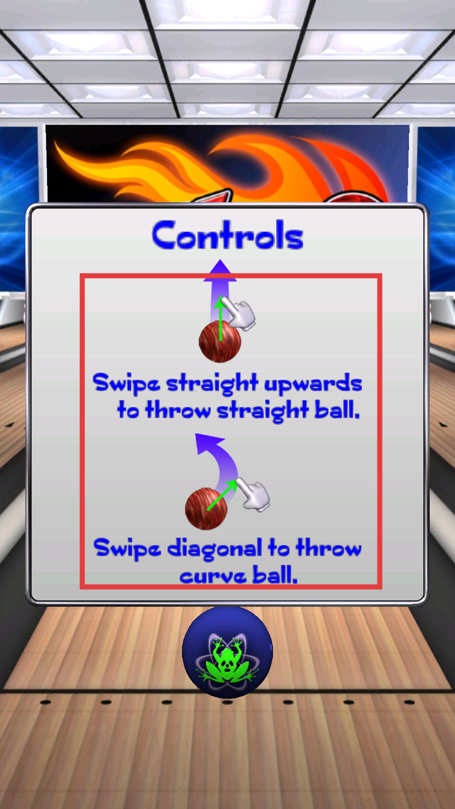 2、按照提示学习操作,通过【上滑屏幕】投直线球,通过【斜向滑动】投曲线球,适配不同球瓶布局。