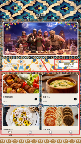 3、切换至【阿拉伯小吃】分类,浏览阿拉伯烤肉等特色小吃,挑选感兴趣的查看。