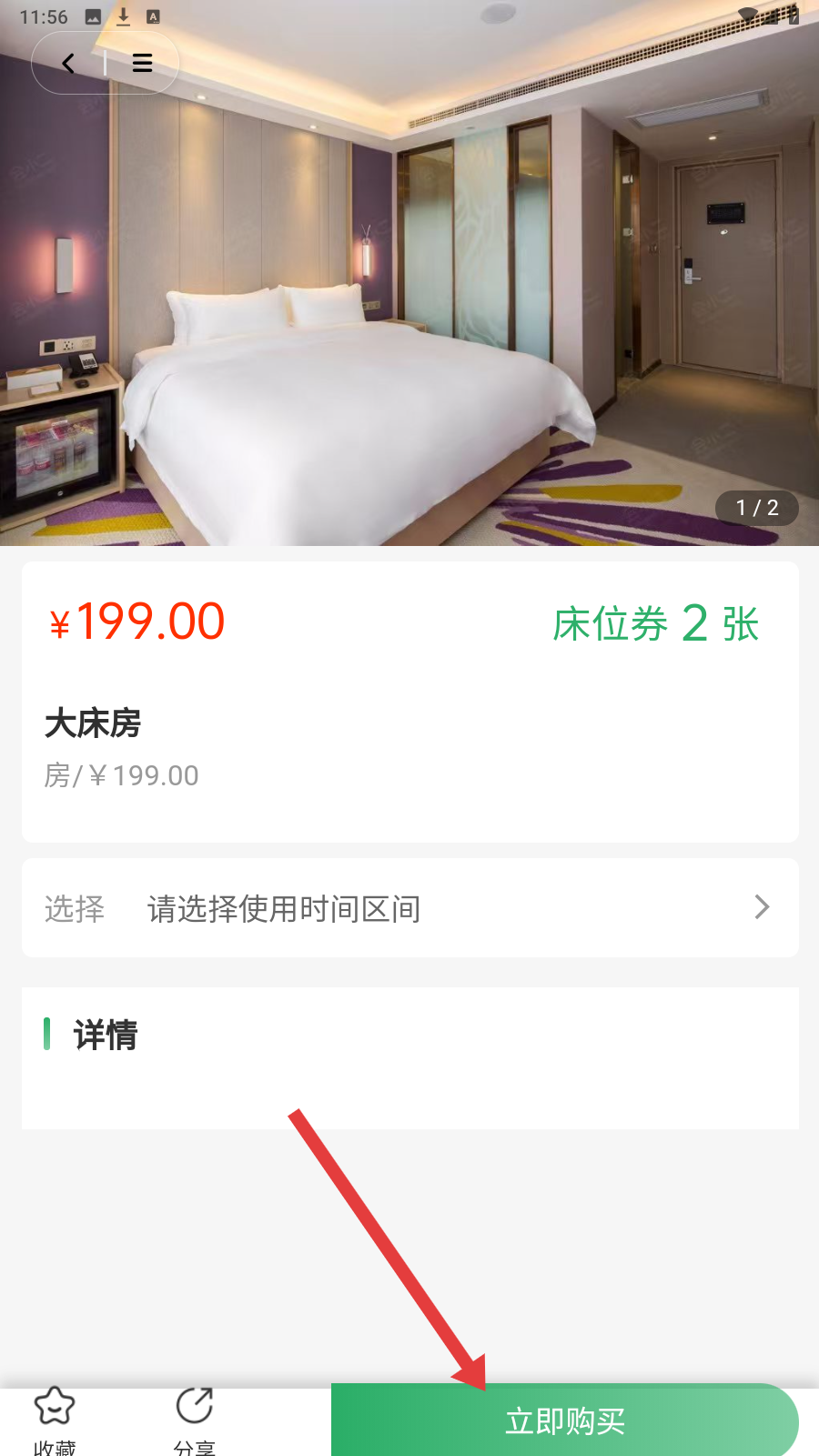 3、选感兴趣房间,查看价格、床位券等详情,确定是否购买。