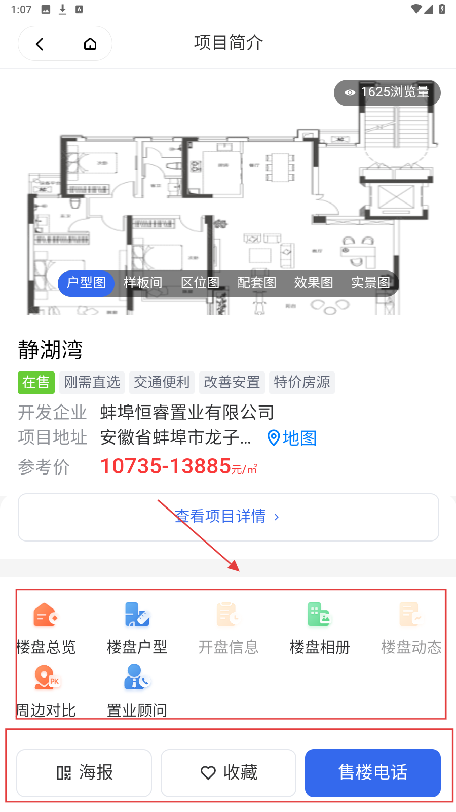 4、点进房源详情,查【楼盘户型/开盘信息】等,拨【售楼电话】咨询购买。