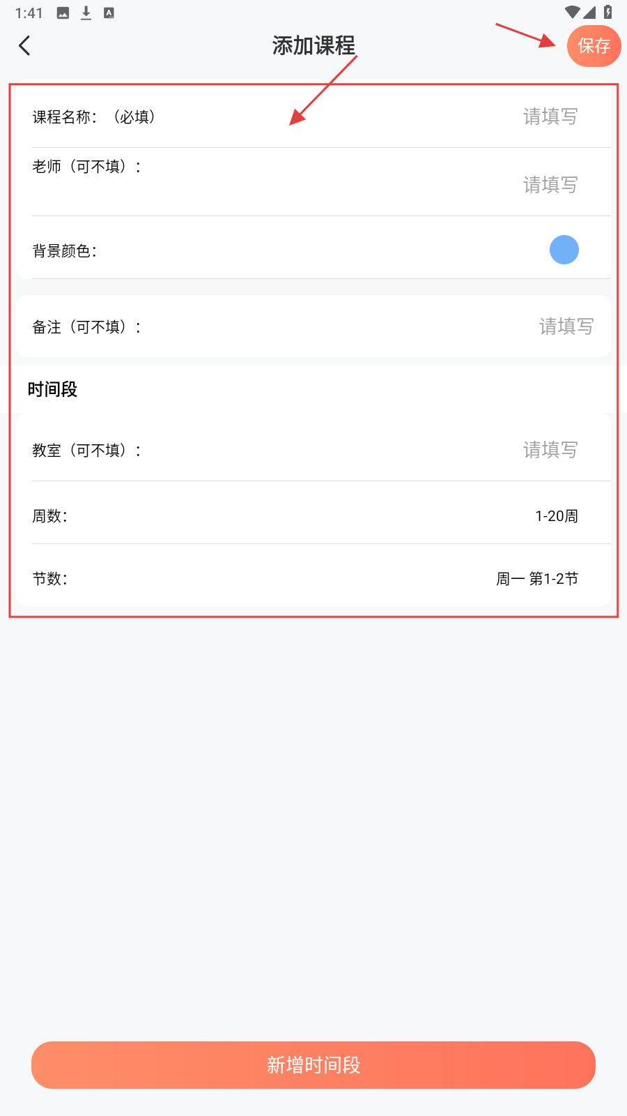 2、填写【课程名称】等必填项,选背景颜色,完成后点【保存】。