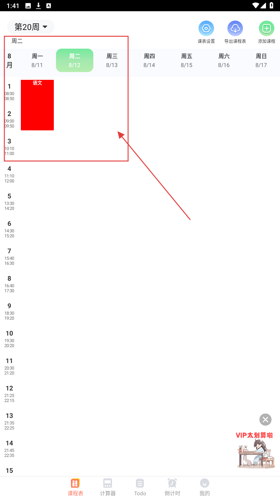 3、保存成功,课程将显示在对应周次-日期的课程表时段中。