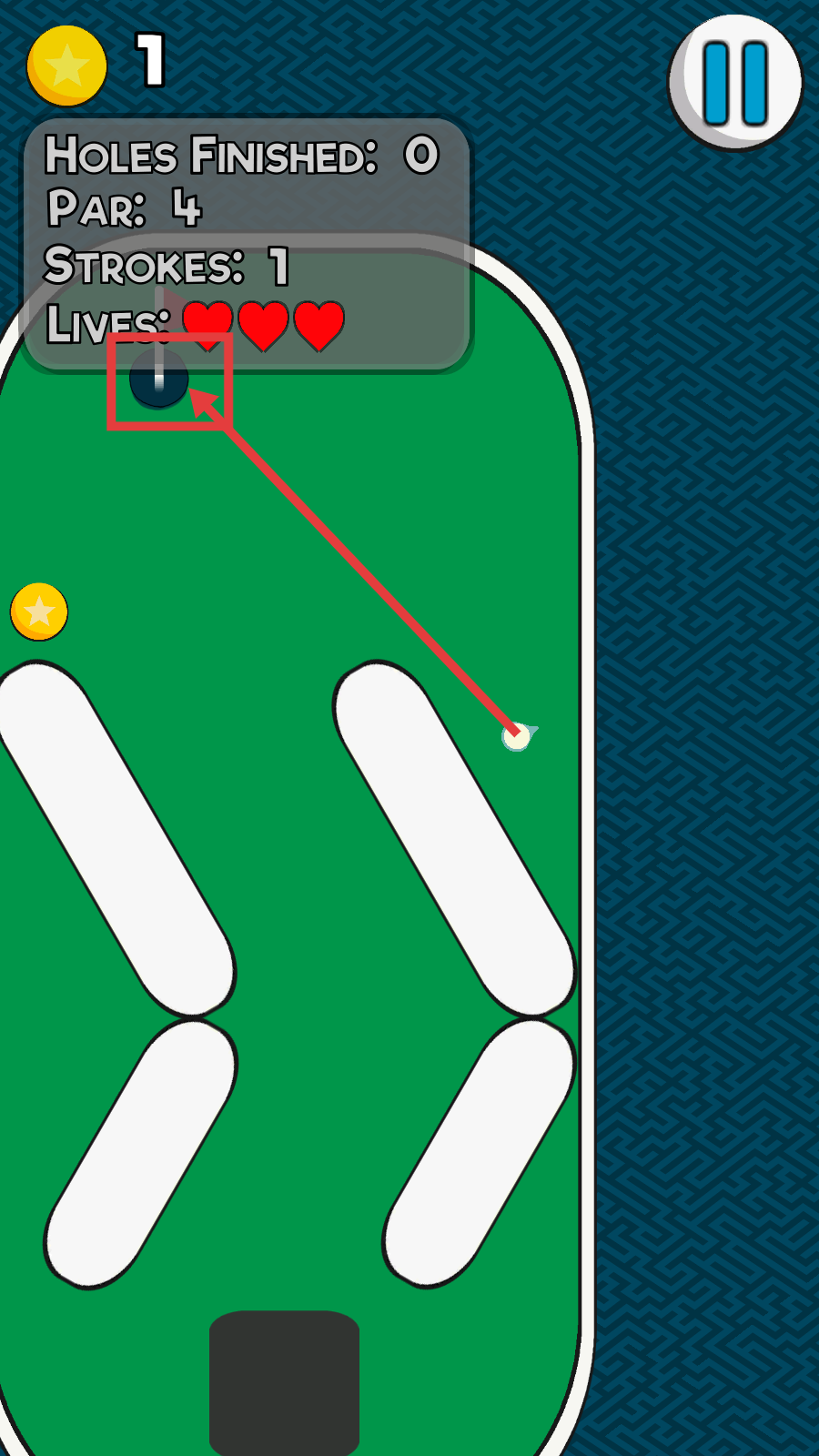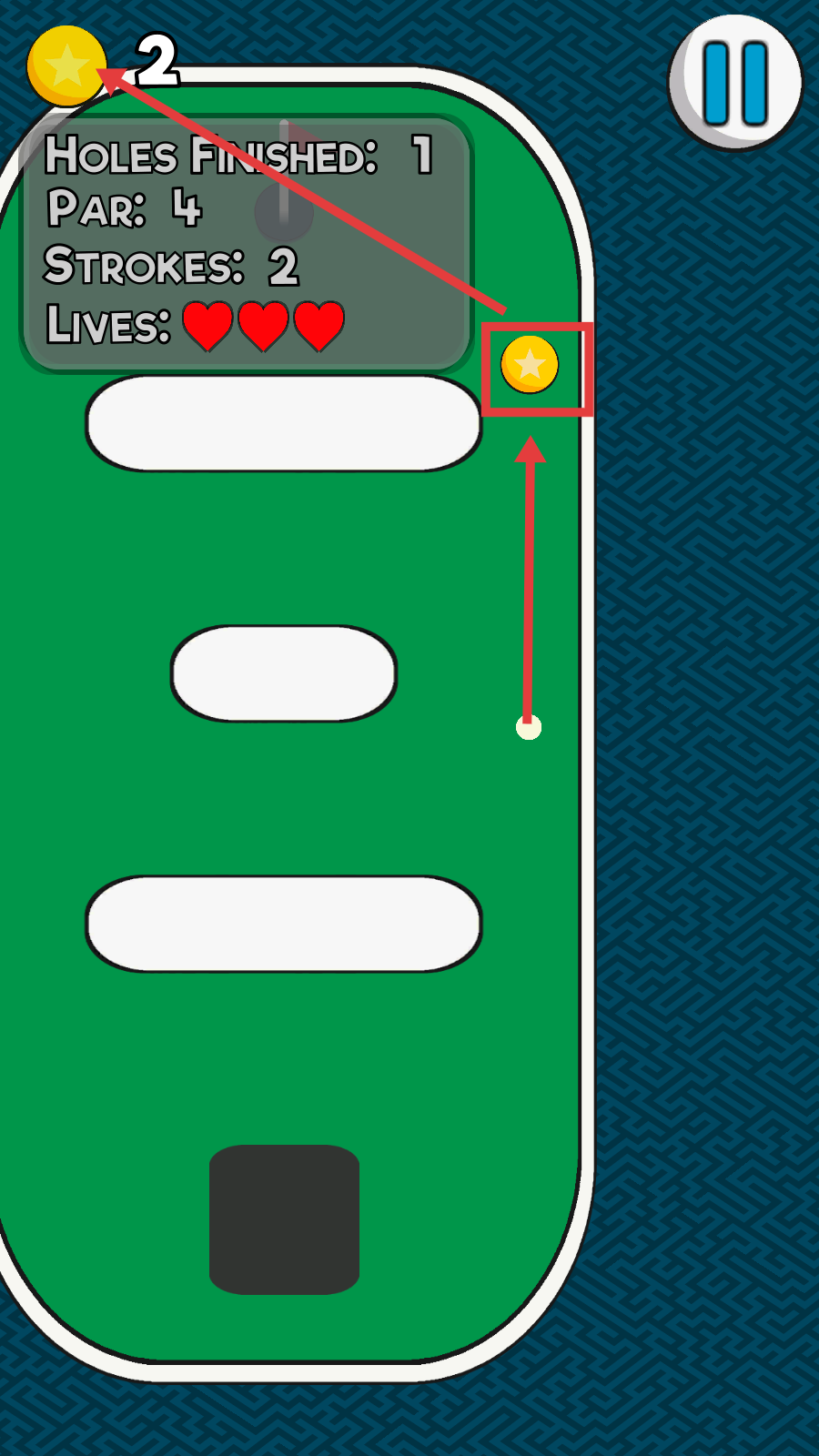 4、完成【HOLES-FINISHED-1】,收集黄色星星,累计【STROKES-2】,推进下一洞挑战。