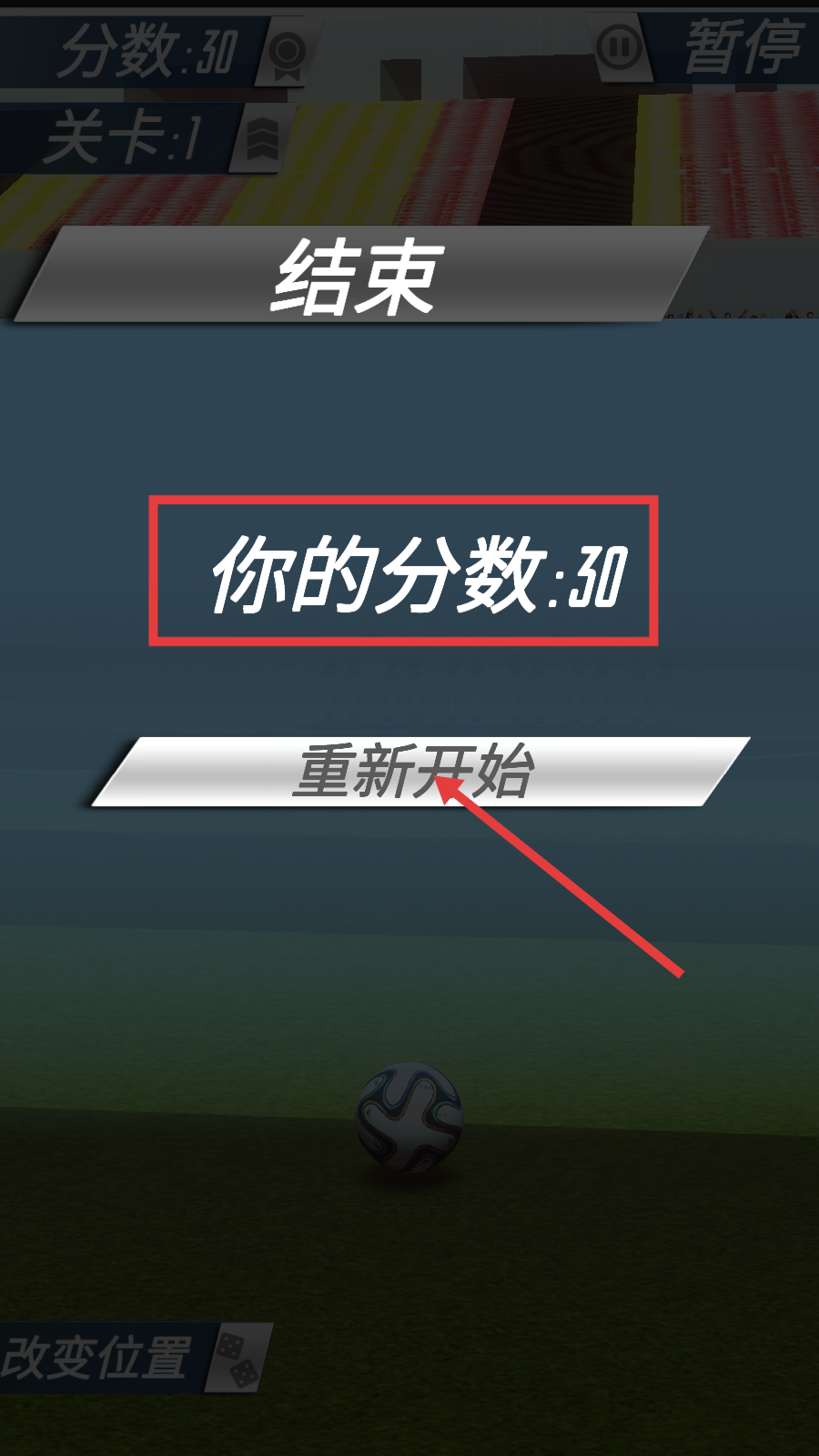 4、结算时查看【你的分数-30】,若想突破点击【重新开始】,复盘优化技巧。