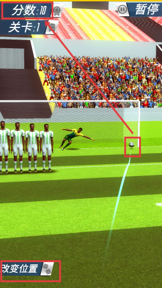 3、借助【改变位置】调整射门点,优化角度,冲击更高分数,提升比赛表现。