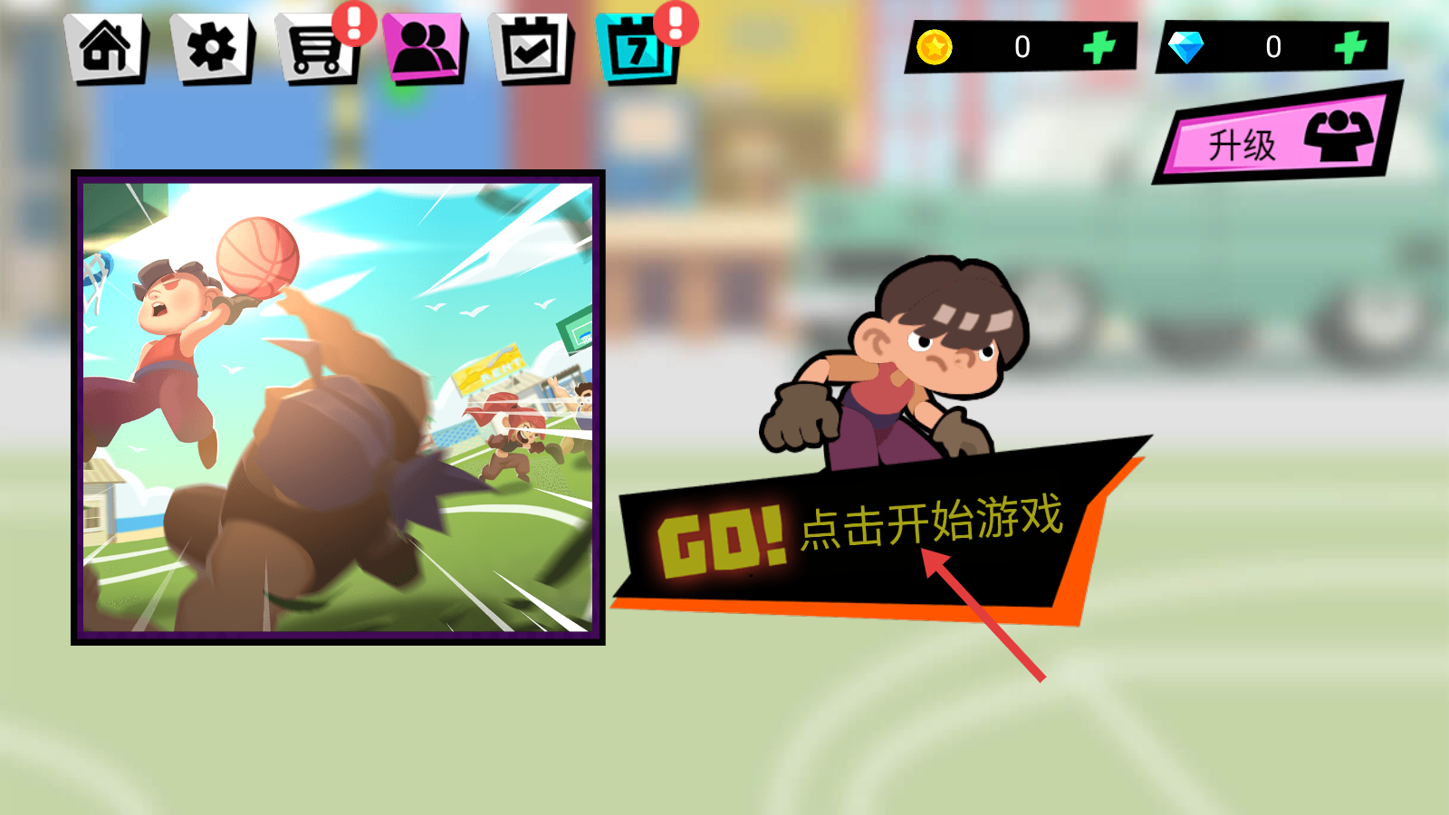 1、主界面点击【GO!点击开始游戏】,进入街头篮球对战模式。