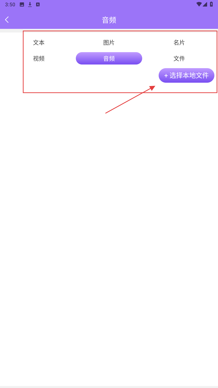 4、选【音频】类型,点【+选择本地文件】上传音频,制作含音频内容的二维码。